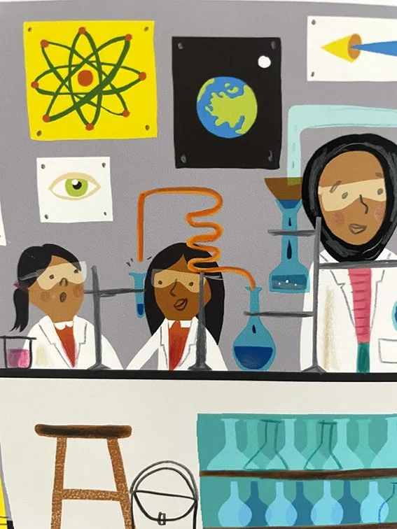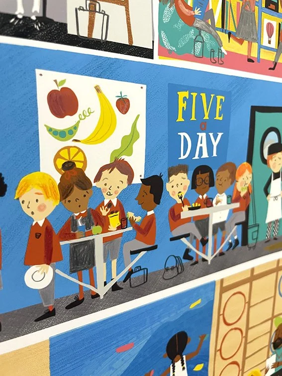 This illustration is a personal project inspired by my own school memories, as well as the experience of seeing my own children begin their educational journeys. I set out to create a bright, playful, and detail-rich scene that captures the energy, curiosity, and everyday moments of school life.